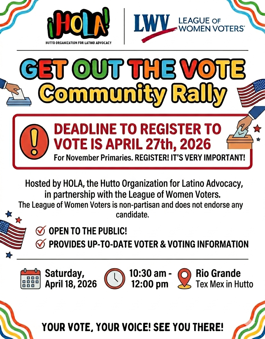 Join HOLA and the League of Women Voters for a community-centered Get Out the Vote gathering! This family-friendly event is designed to celebrate civic engagement, provide voter education resources, and help our community feel confident and informed ahead of upcoming elections. Enjoy refreshments, get registered to vote, connect with neighbors, and get your voting questions answered by trusted, nonpartisan representatives.